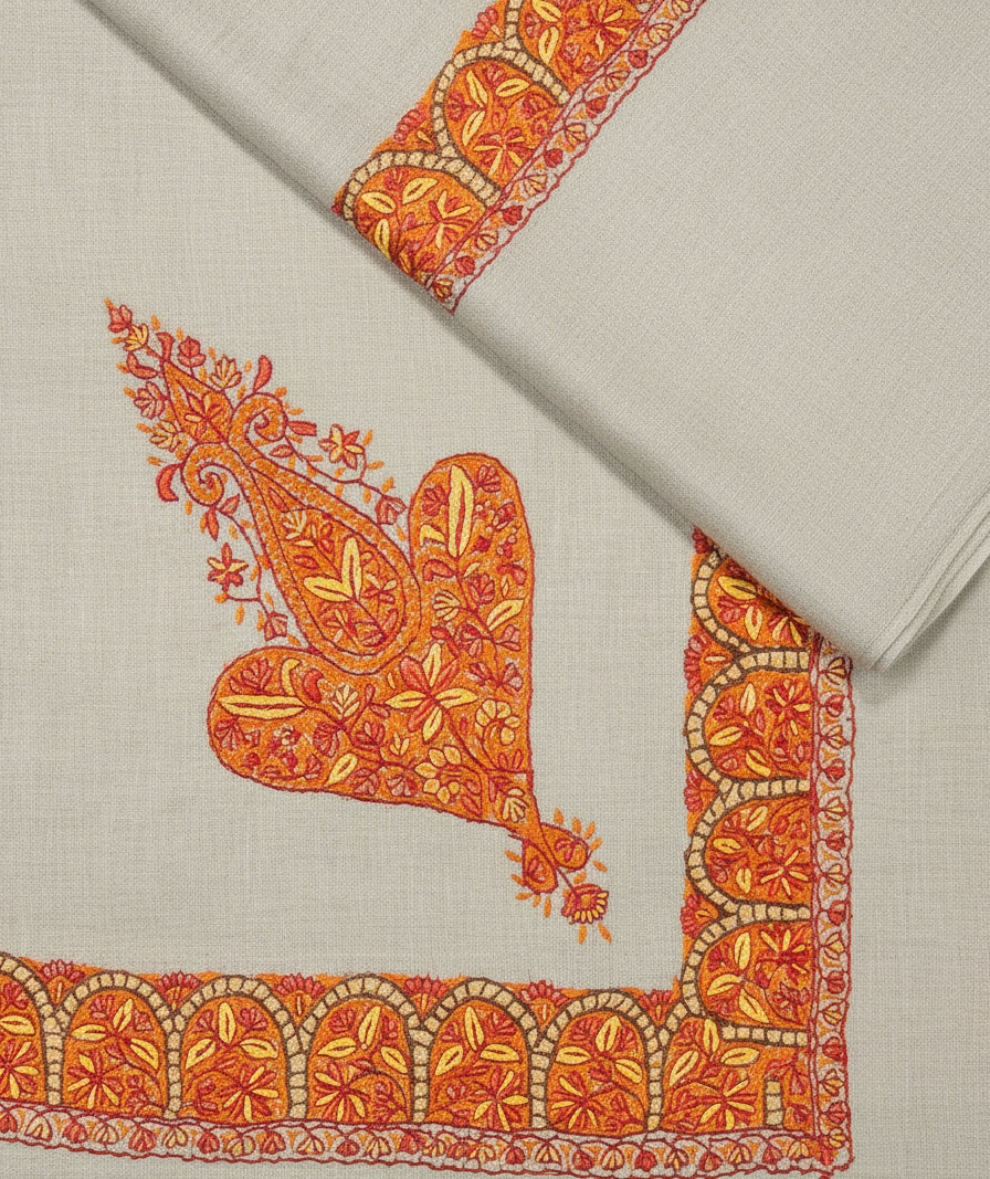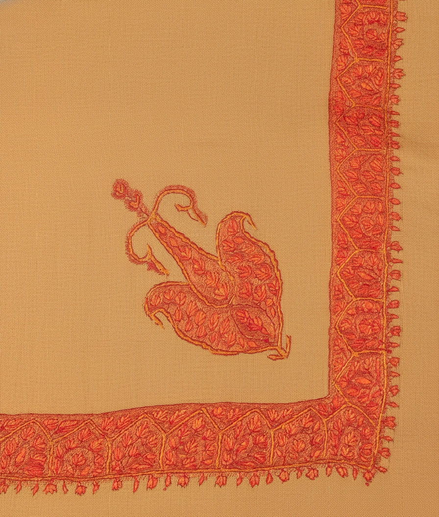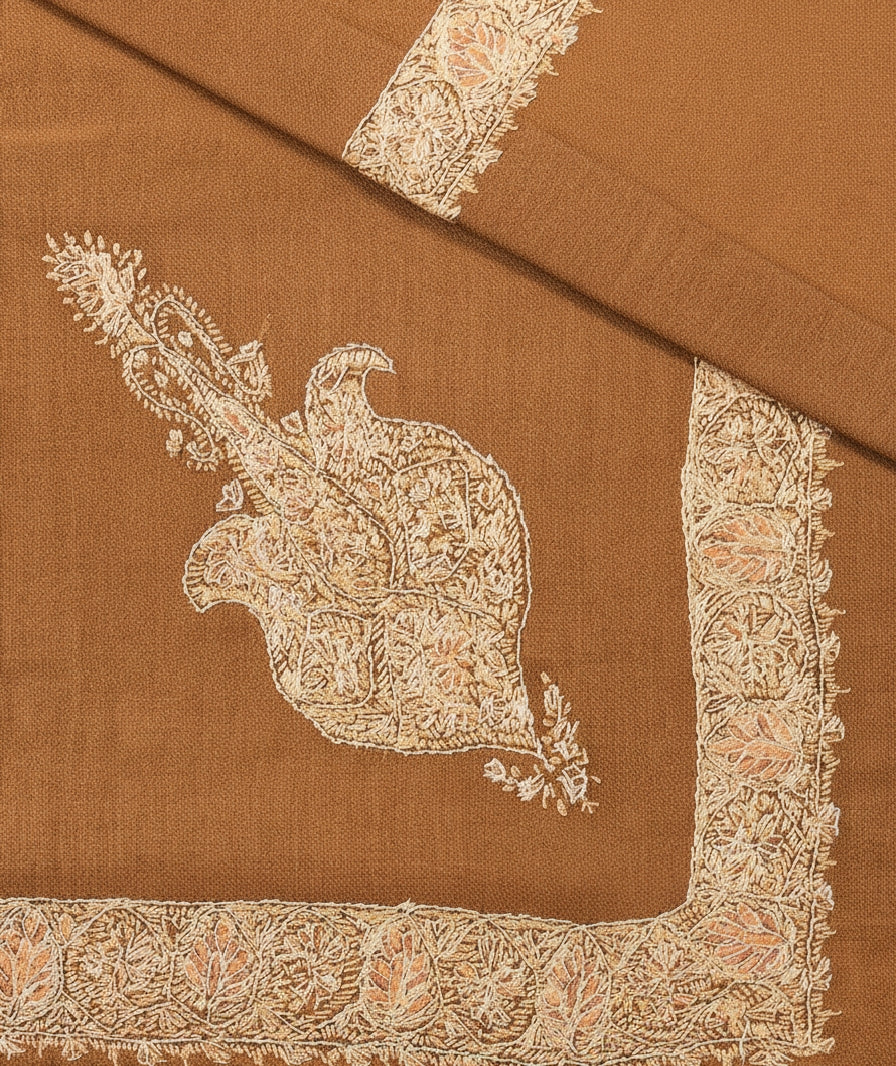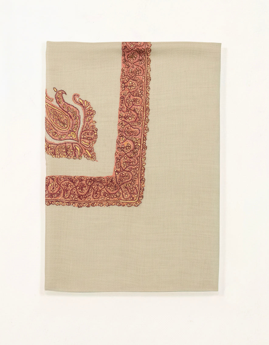Pristine pure Belgium Pashmina shawl embroider upon by hand with intricate sozni neemdor design woven with utmost attention to detail