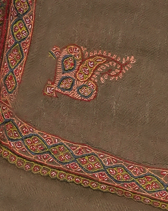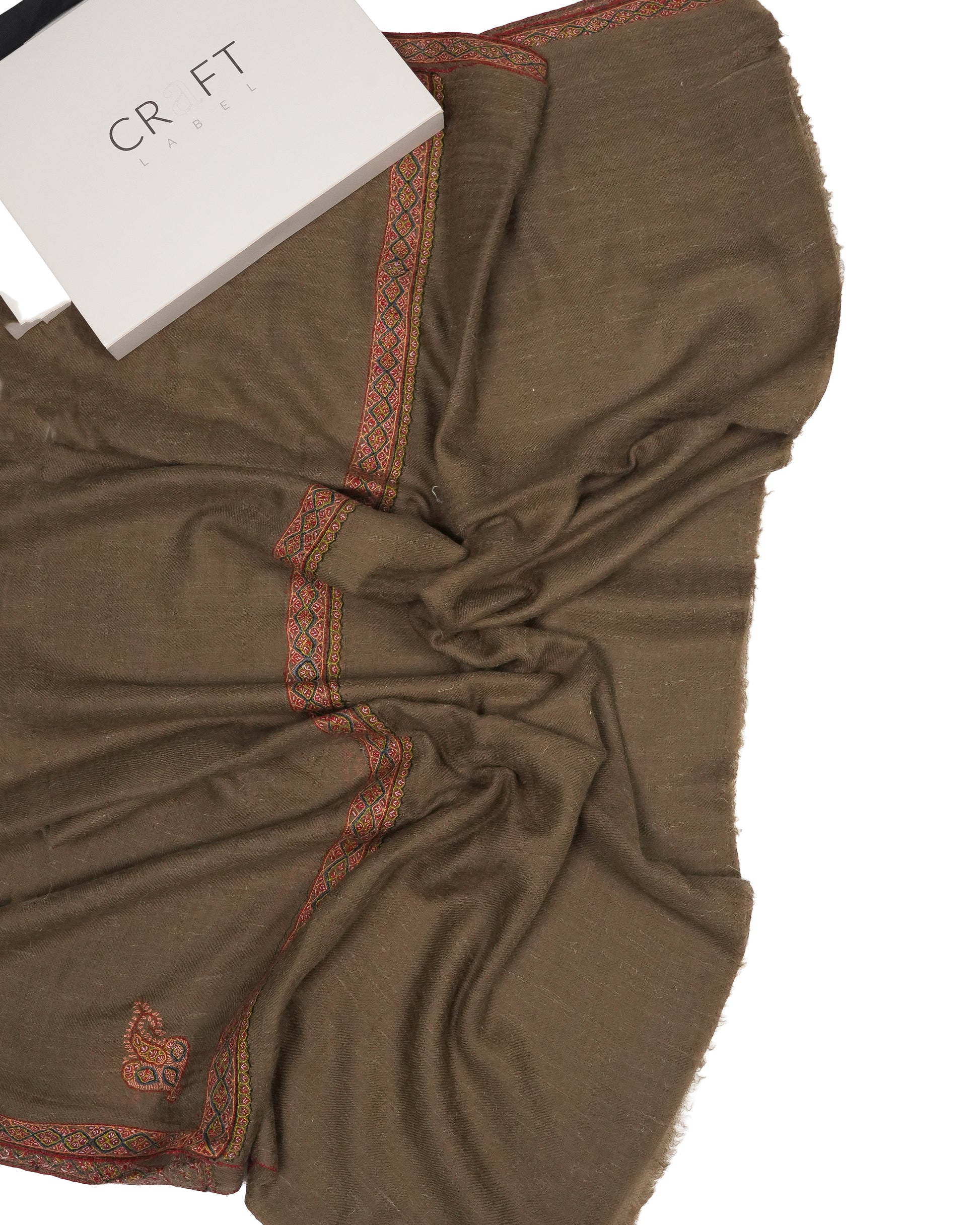 Delicately hand woven with pashmina threads this Tila shawl is one the traditional arts of kashmir, The metals are hammered into wires and passed through needles and embroidered over apparel and accessories especially for brides. Such a piece would never age or should we say it would become antique with time.