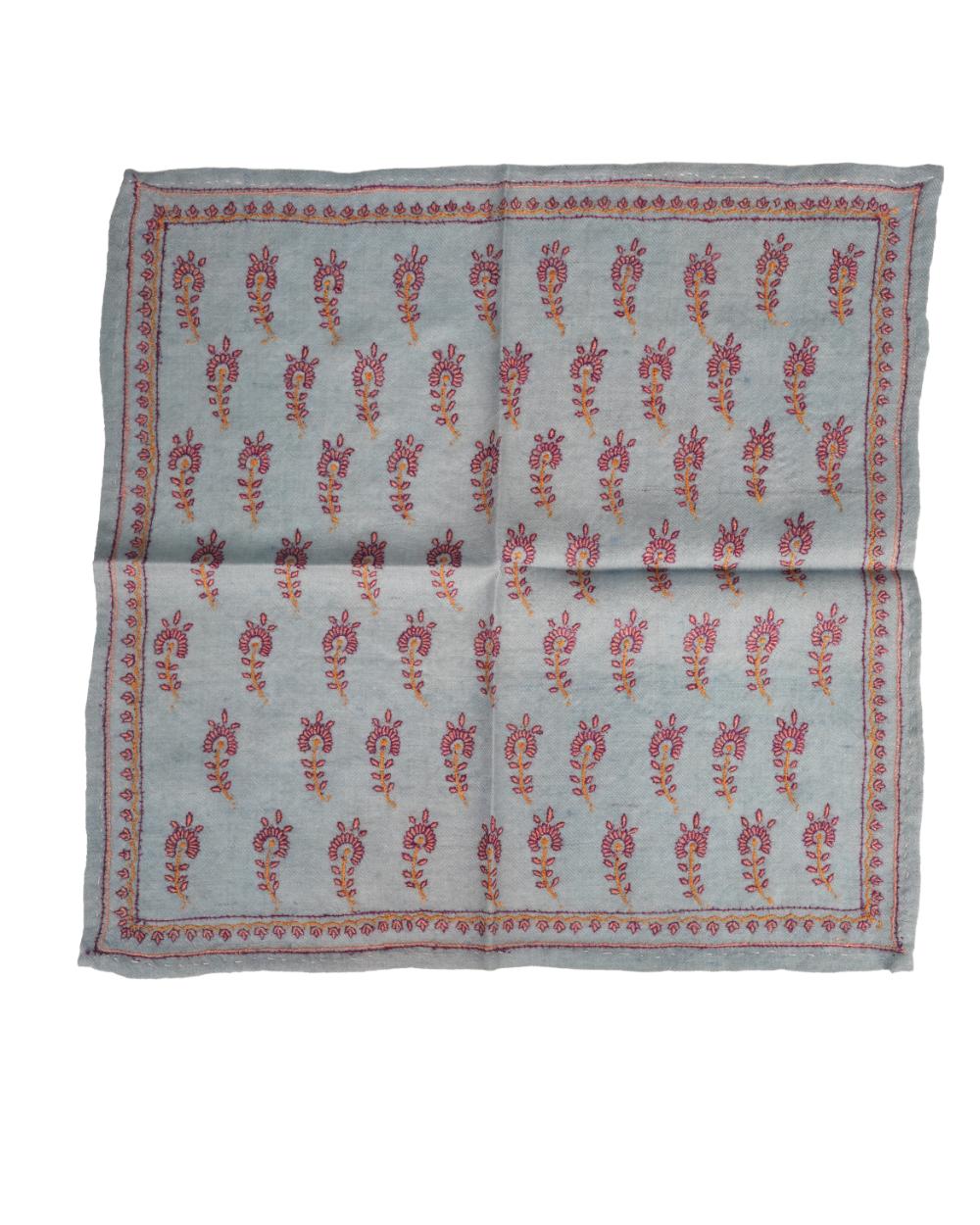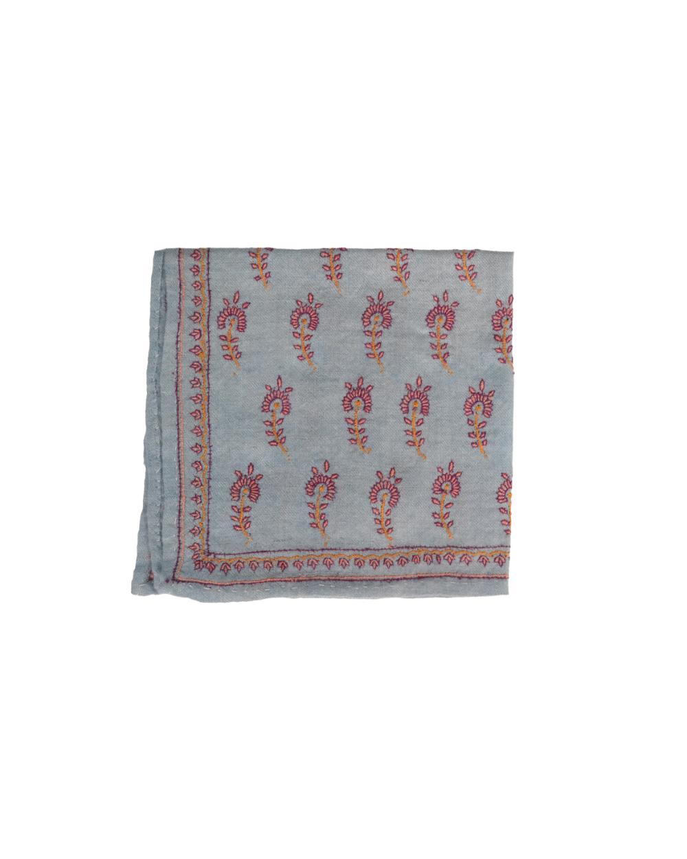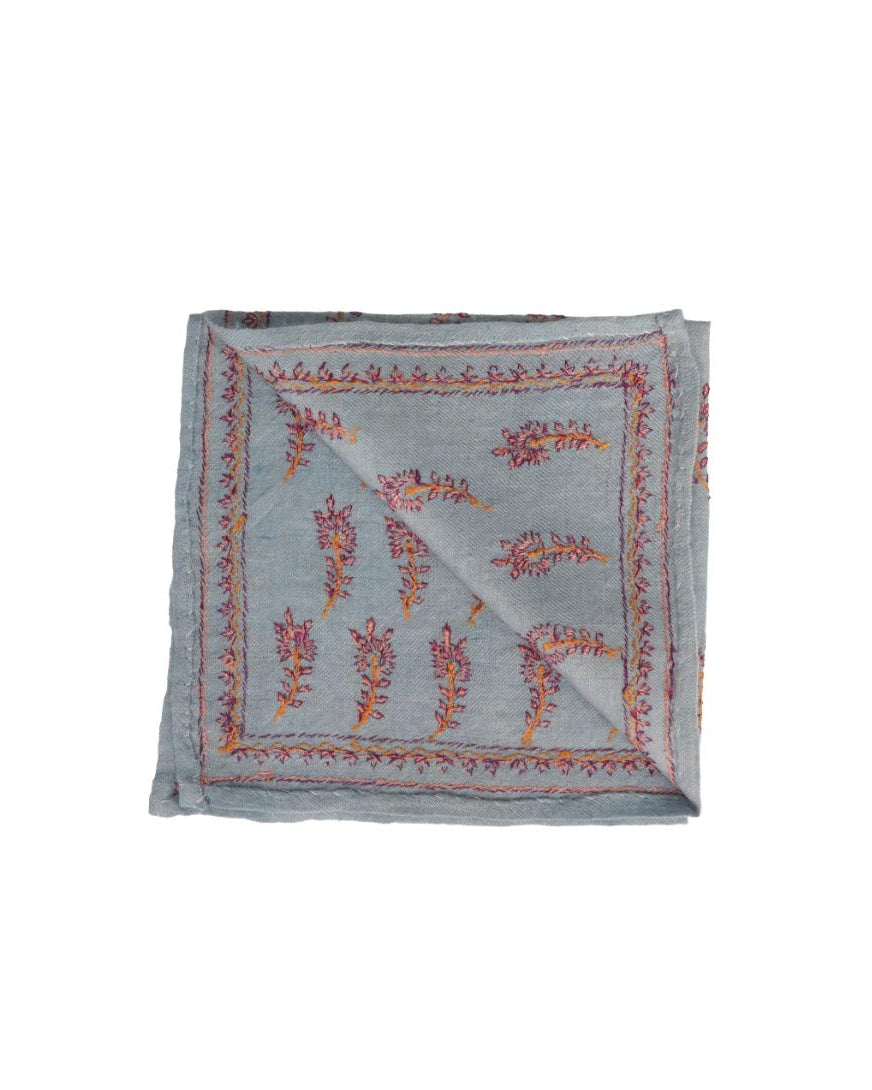 This refined pocket square brings sophistication to every ensemble. The hand-embroidered floral design on sky blue pashmina adds a distinctive accent to blazers, suits, or casual wear. Its versatile size makes it ideal for both formal occasions and everyday styling, while the premium pashmina ensures a luxurious feel against the fabric of your jacket.
